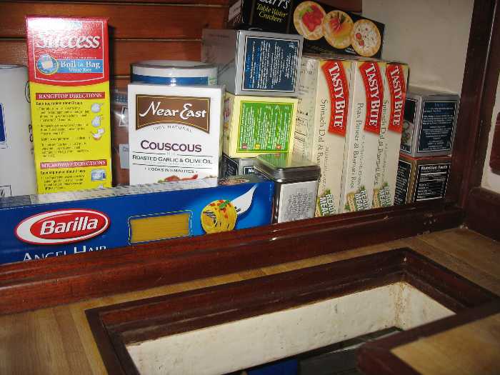 Stocking up. We had various friuts, vegetables, tea, soups, canned seafood, cereal, oatmeal, eggs, salad fixings, drinks and chocolate.