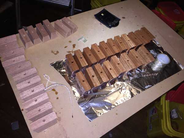 I worked out the placement of the blocks for a good appearance. There would be 18 blocks on each side. The mounting holes would be on 10 3/8" centers.