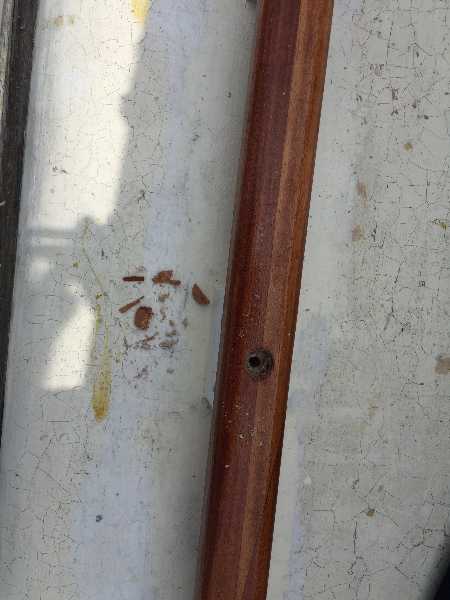Originally I was going to rely on the threading of the 3 1/2 bolt into cured epoxy. I coated the bolt with wax and set it in liquid epoxy. But after curing the bolt turned too loosely. I got concerned that this scheme might not be adequate. So I designed another way involving a 4" bolt and regular nuts on the bottom side of the cabin top. I started by digging out the bung and extracting the screw. I then drilled a hole to 4" depth.