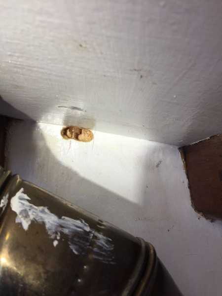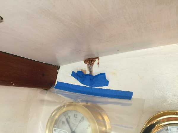 Then I went below and drilled into the side of the bulkhead to make enough room for a regular nut. It was tedious coaxing the bolt and nut to go together in the confined space. The nut liked to go at an angle and not engage the threads. After several tries I got the nut started on the bolt.