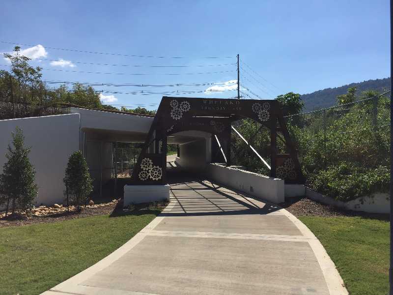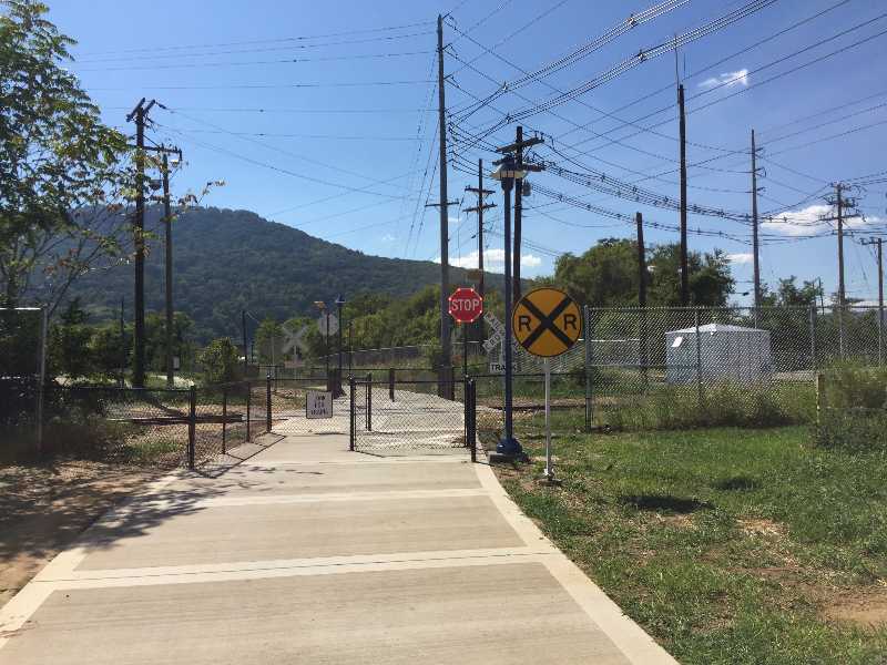 There are several rail road crossings. I like this tunnel crossing. This trail opened in August 2016. It is so new that it doesn't appear on Google Maps or Traillink.com yet (as of Oct 16, 2016).