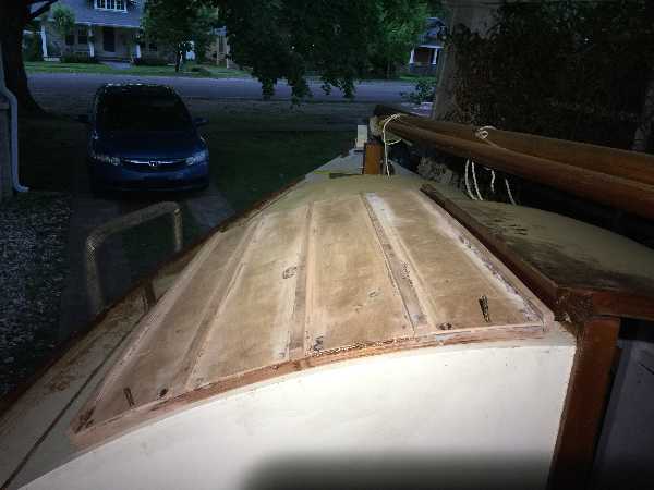 I wanted a smaller solar panel that conformed to the shape of the cabin top and had a bit more style than a satellite. I wanted to design it to look like it belonged with the boat. As these panels are configured to put out nearly 50 volts of DC current safety is a concern. It is better to have the panel such that I don't have to worry about it while sailing. After a bit of thought I came up with a plan that will be apparent from looking at the next few pictures. I built this panel in May 2017.