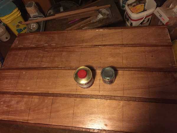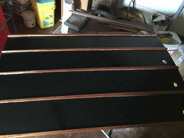 Here I have applied an initial coat of varnish to the strips and epoxy to everything else. This panel is to last indefinitely.