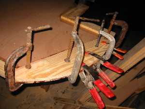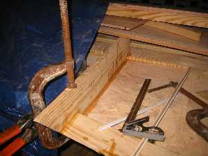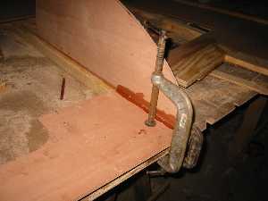 ![]() The end pieces of the centerboard trunk are in place. I glued these for one side only. I will lay in fiberglass on both sides before closing up the centerboard trunk. |