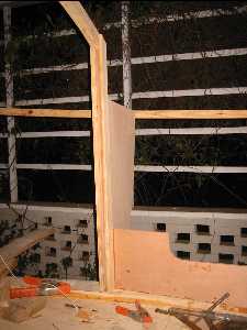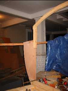 Here is a detail of starboard bulkhead #2 looking forward. This is somewhat modified from the plans to hold the galley bin and to create a cusp to accept the end of the arch. The galley will be a minimal place for storing and cooking food. |