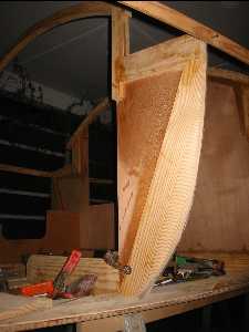 The port side bulkhead is similar design. The plans call for a curved section to be sawn out of the side of the |