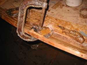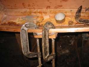 There are many butt joints. Here I've used clamps to hold it straight until the epoxy cures. |