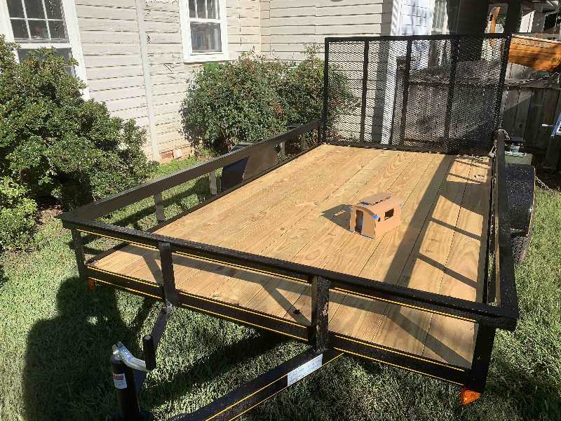 I just bought this utility trailer from a local outfit. It is 6'4" x 12' which will work well with a 7' x 12' gypsy wagon. I added electric brakes to it for improved safety.