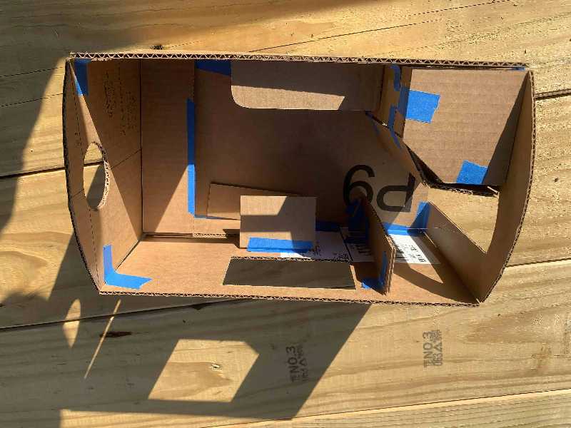 I had to move construction to the front porch due to rain. This is currently the only way I can keep things dry. I have just about decided to put up my 10'x20' temporary tarp shed as a work area.