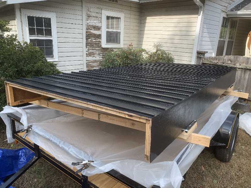 I then followed it up with two coats of black gloss exterior latex house paint. It came out a really dark gray and not as glossy as I'd like. But later near the finish I will put a third coat on.