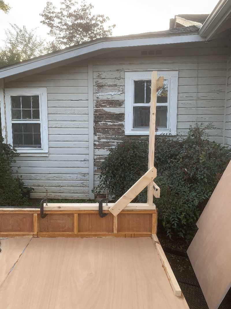 Before joining them I created a brace for making sure the back is perpendicular to the base. This will also hold it against wind until I get more of the structure built.