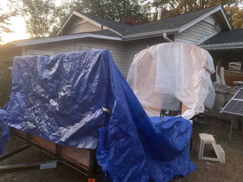 Pictured here is a sheet of 3/4" plywood that I got at the big box store. I don't recall if it is interior or exterior grade plywood. Here it has sat outside with maybe three periods of rain in the past month and it is already falling apart. This is a hige reason that I paid a bit more to get BS1088 marine grade occoume plywood. I am looking for strength and longevity in this build.