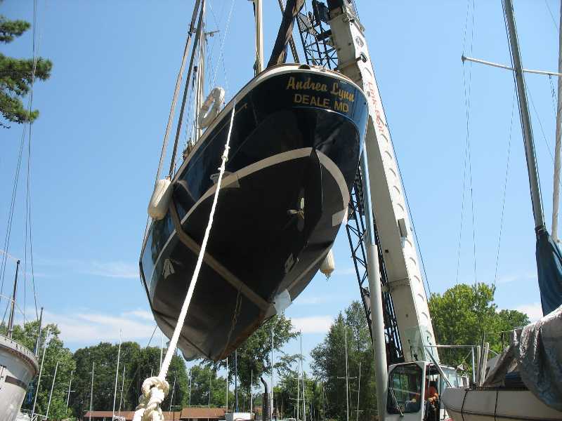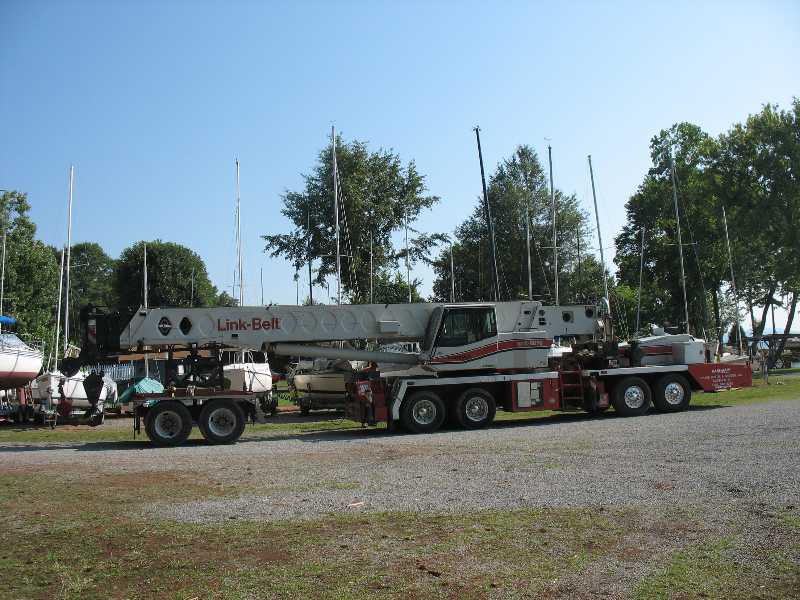 Hiring this crane was probably the best course of action given the circumstances. If I had tried to use a smaller crane we would have had to set Andrea Lynn down on jack stands twice. This would have added considerably to the crane time. A larger crane than 70 tons would still have required sitting down on jack stands and cost more per hour unless it was a truly large crane. But then the hourly rate would have been much higher. Other options are a larger hydraulic trailer but I was not able to find one locally. I could have had a trailer custom made for Andrea Lynn but I only needed it once. The engine hoist cost less than a crane rental. But to build a hoist for the whole boat would have cost more and taken much longer than the crane did. |